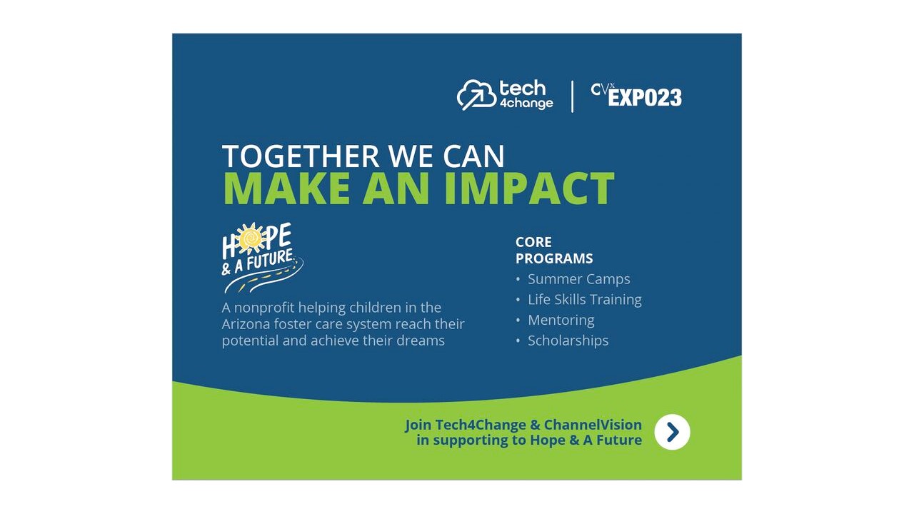As Tech4Change is partnering with ChannelVision Magazine at #CVxEXPO23 to help Hope & A Future continue their 15th year of service to those in the Arizona Foster Care system.